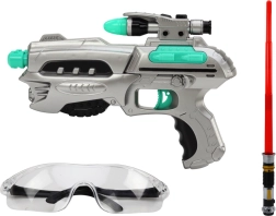 - Équipement complet : pistolet, sabre lumineux, lunettes de protection