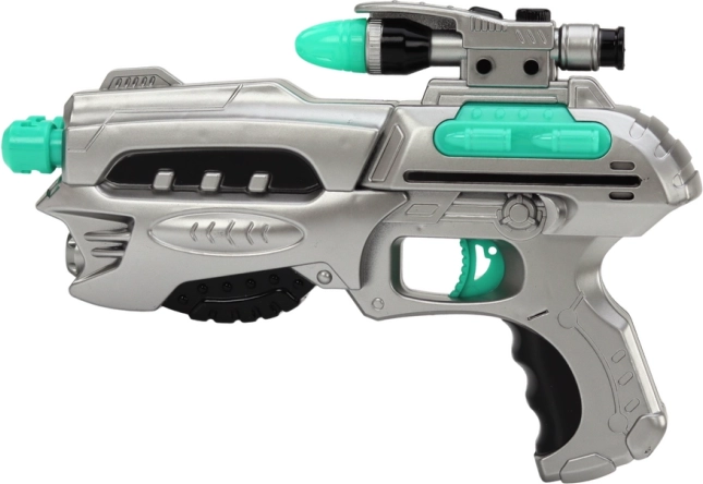 En appuyant sur la gâchette, des effets lumineux et des sons de tir s’activent pour soutenir un jeu spatial captivant mais sûr.