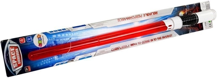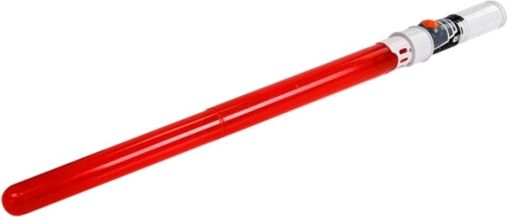 Le sabre lumineux fonctionne en appuyant sur le bouton situé au milieu de la poignée. Après activation, le sabre s’illumine d’une intense lumière rouge et des sons de combat se font entendre.