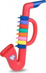 Saxophone rouge pour enfants fabriqué à partir de plastique de haute qualité avec 8 clés offre un grand amusement pour les petits musiciens. Fabriqué en Italie pour une sécurité maximale.