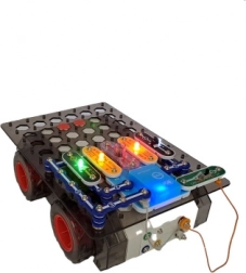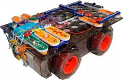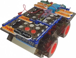 Le kit Boffin IV Coding propose plus de 40 composants avec lesquels vous créerez et programmerez des projets comme une voiture, un spectacle lumineux, un phare, un générateur ou une lumière automatique. Tout est clairement expliqué dans un manuel complet en tchèque. L’élément principal est une plaque fixée sur la voiture, dans laquelle vous encliquetez facilement les composants.