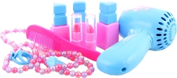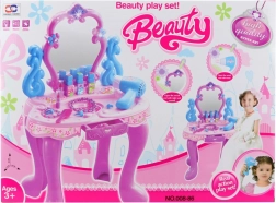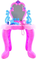 Cette magnifique coiffeuse est idéale pour toutes les petites princesses. Elle s'illustre par un sèche-cheveux fonctionnel et une lumière au sommet du miroir, qui s'allume et joue après insertion des piles. Le colis comprend un peigne, des perles, 3 bagues, des autocollants et d'autres accessoires créatifs.