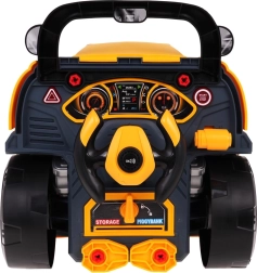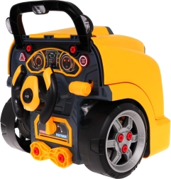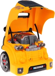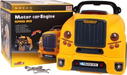 Jouet interactif, bus scolaire jaune avec capot avant relevable et tableau de bord, destiné aux enfants à partir de 3 ans. L’ensemble comprend des éléments pour assembler la partie avant du bus et des outils nécessaires au montage et au démontage des pièces, comme un tournevis et des clés. Sous le capot se trouve un grand moteur amovible que l’enfant peut démonter. Les bougies d’allumage et les roues peuvent également être remplacées. Sur le tableau de bord se trouvent un bouton de démarrage du véhicule avec sons d’allumage du moteur, un volant avec klaxon et un avertisseur d’urgence. Sous le volant se trouve un compartiment de rangement pour tous les outils, vis et boutons nécessaires. Le jouet dispose d’une poignée de transport confortable. Alimentation par 3 piles AA 1,5 V (non incluses). Ce jouet pour petits mécaniciens automobiles développe la dextérité manuelle, la motricité fine et la coordination œil-main.