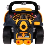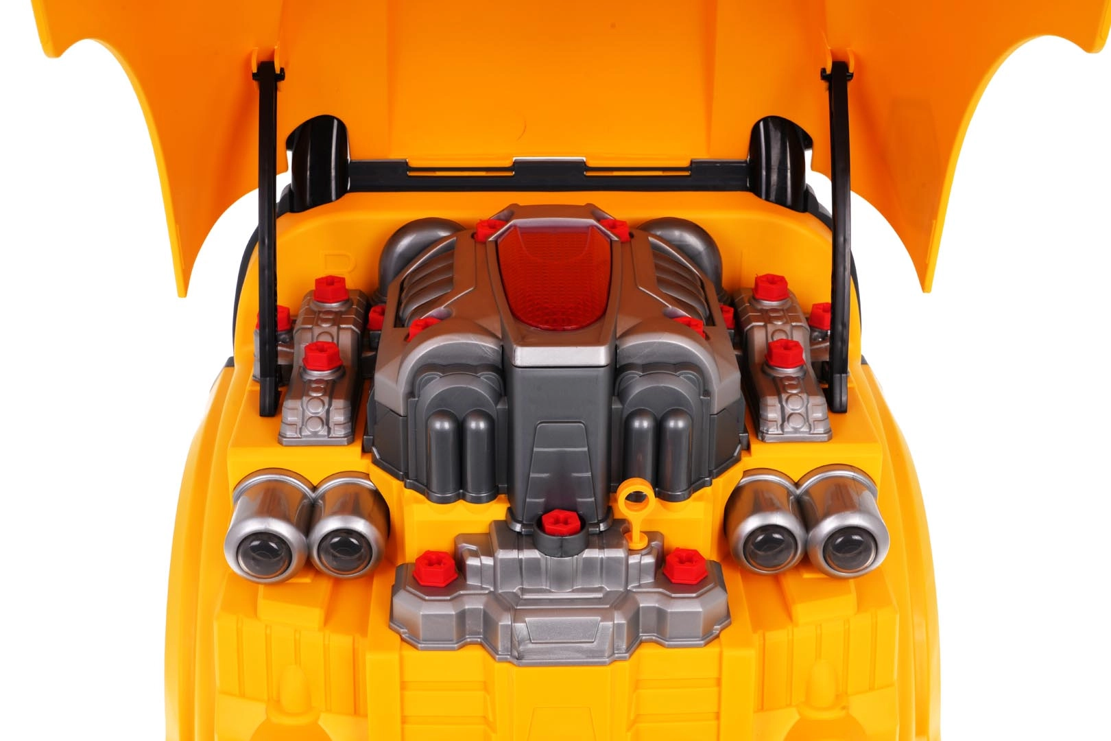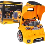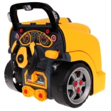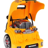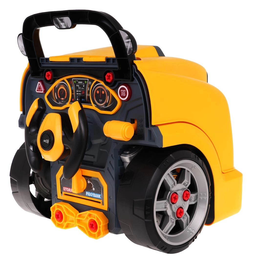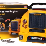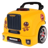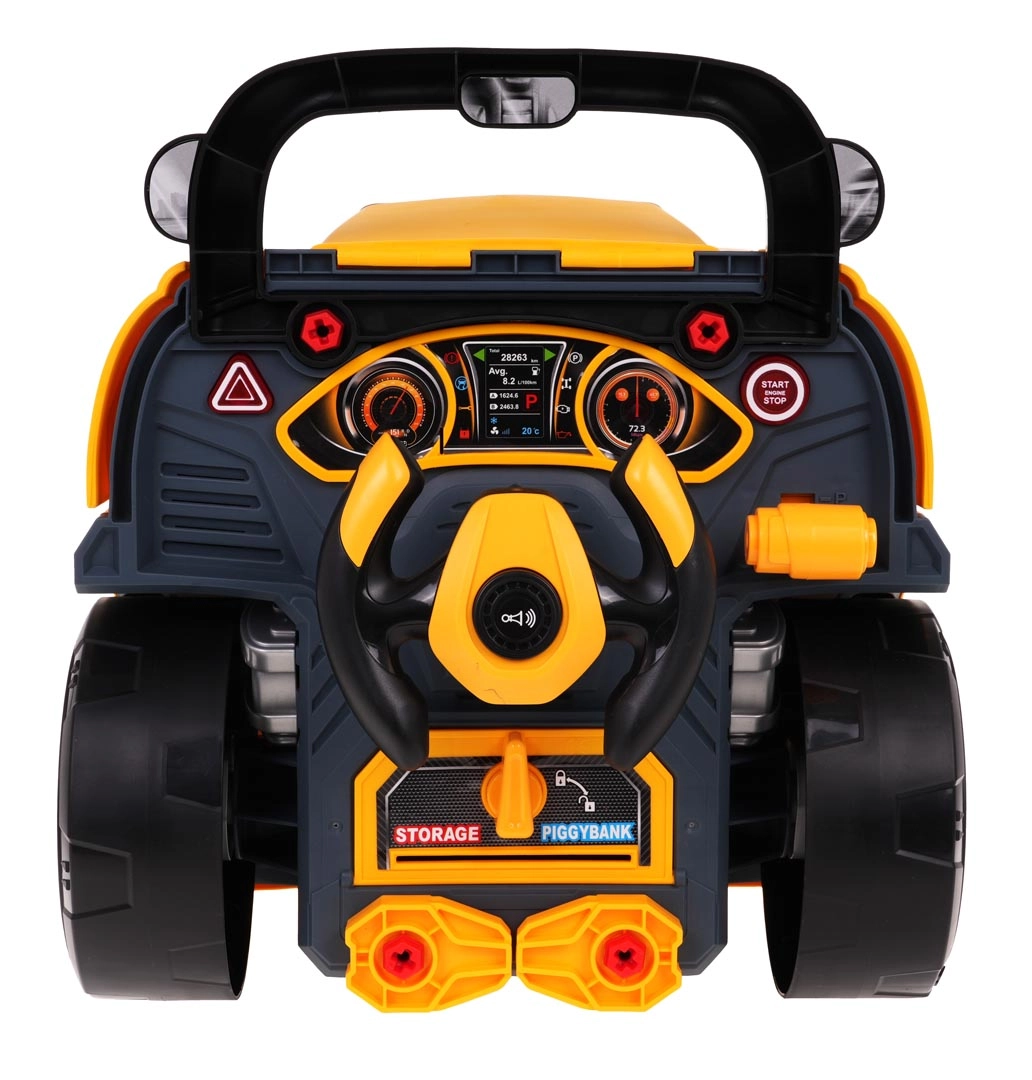 Jouet interactif, bus scolaire jaune avec capot avant relevable et tableau de bord, destiné aux enfants à partir de 3 ans. L’ensemble comprend des éléments pour assembler la partie avant du bus et des outils nécessaires au montage et au démontage des pièces, comme un tournevis et des clés. Sous le capot se trouve un grand moteur amovible que l’enfant peut démonter. Les bougies d’allumage et les roues peuvent également être remplacées. Sur le tableau de bord se trouvent un bouton de démarrage du véhicule avec sons d’allumage du moteur, un volant avec klaxon et un avertisseur d’urgence. Sous le volant se trouve un compartiment de rangement pour tous les outils, vis et boutons nécessaires. Le jouet dispose d’une poignée de transport confortable. Alimentation par 3 piles AA 1,5 V (non incluses). Ce jouet pour petits mécaniciens automobiles développe la dextérité manuelle, la motricité fine et la coordination œil-main. . Fonctions : . - capot du bus relevable, . - moteur rotatif, . - sons d’allumage du moteur, de conduite, de marche arrière, .- klaxon sur le volant, .- sirène d’urgence, .- phares lumineux, .- éclairage du moteur, .- compartiment à outils, .- levier de vitesses, .- poignée de transport confortable, .- guidon mobile, . |