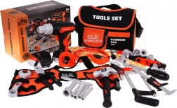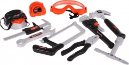 - ceinture à outils, .- perceuse interactive, .- tournevis interchangeables et embouts: foret, embout plat, embout cruciforme, embout à douille, .- douille de vissage, .- rapporteur/équerre, .- clé à molette, .- clé, - pince, .- marteau, .- 3 petites pièces à visser, .- 3 grandes pièces à visser, .- 6 pièces de différentes longueurs pour le vissage, .- 6 x vis, .- 6 x joints, - gobelet doseur, .- masque, .- lunettes de protection, .- 6 x chevilles, .- lance-pierre. . |