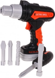 Un fantastique kit de bricolage avec tournevis et perceuse, ceinture et sac à outils, destiné aux enfants à partir de 3 ans. Le tournevis ne se contente pas de ressembler à un vrai, il fonctionne aussi. Il possède des embouts interchangeables que l’on peut changer à volonté et, grâce aux deux sens de rotation, il permet de visser et de dévisser. De plus, la batterie peut être retirée du tournevis comme sur les outils pour adultes. Il fonctionne avec 2 piles AA 1,5 V (non fournies). Outre le tournevis, l’ensemble comprend également des outils de bricolage tels qu’un tournevis à embouts interchangeables, un rapporteur/équerre, des clés, des vis et des éléments à visser. Après le jeu, tous les outils peuvent être rangés dans le sac. En plus du compartiment principal fermé par velcro, le sac comporte une petite poche à l’avant et une poche avec écusson dans laquelle on peut insérer par exemple un tournevis. La sacoche est équipée d’une bandoulière. . |