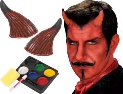 Nous vous présentons un set de maquillage grâce auquel vous transformerez rapidement et efficacement votre look en diable. Ce set comprend des cornes artificielles, une palette de maquillage pour le visage et des outils pour une application facile et précise. Des couleurs intenses garantissent un effet longue durée et une texture crémeuse facile à utiliser.