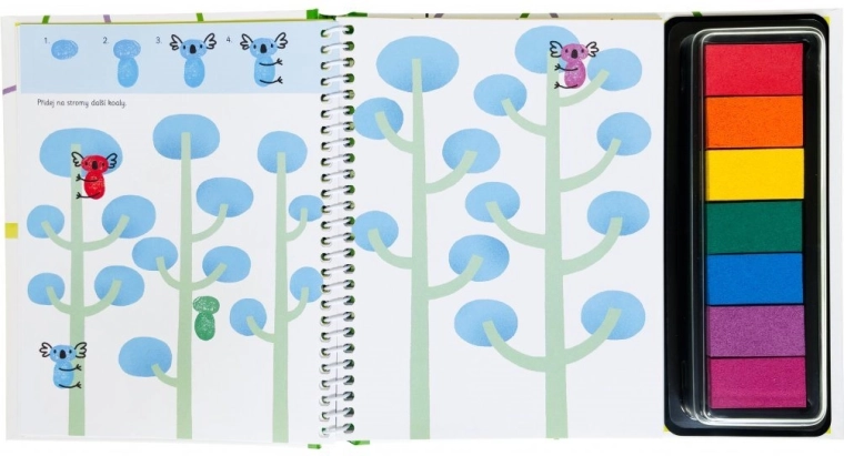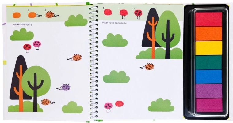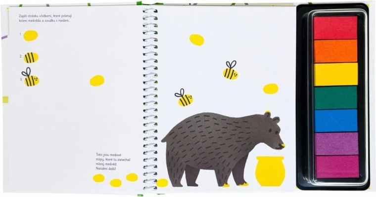 Grâce à des instructions simples, les enfants apprendront à imprimer par exemple des écureuils sur une branche, des souris sur un épi de blé, des poissons sous l’eau ou des chauves-souris en vol. Ils peuvent ajouter des plumes de queue au paon, des écailles au crocodile et une robe tachetée aux vaches. Les encres sont lavables à l’eau, vous n’avez donc pas à craindre les taches sur les vêtements.