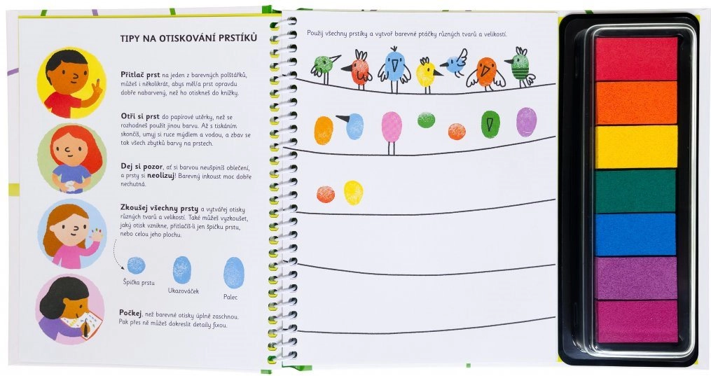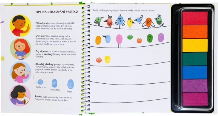 Plongez avec les enfants dans un univers de couleurs et de créativité grâce au livre Empreintes de doigts - Activités avec les animaux. Il suffit de soulever le couvercle des tampons encreurs colorés et de se lancer dans les empreintes. Ce livre encourage les enfants à essayer différents doigts et à créer des empreintes de diverses formes et tailles. Les éléments créatifs du livre permettent aux enfants d’ajouter leurs propres détails aux empreintes.
