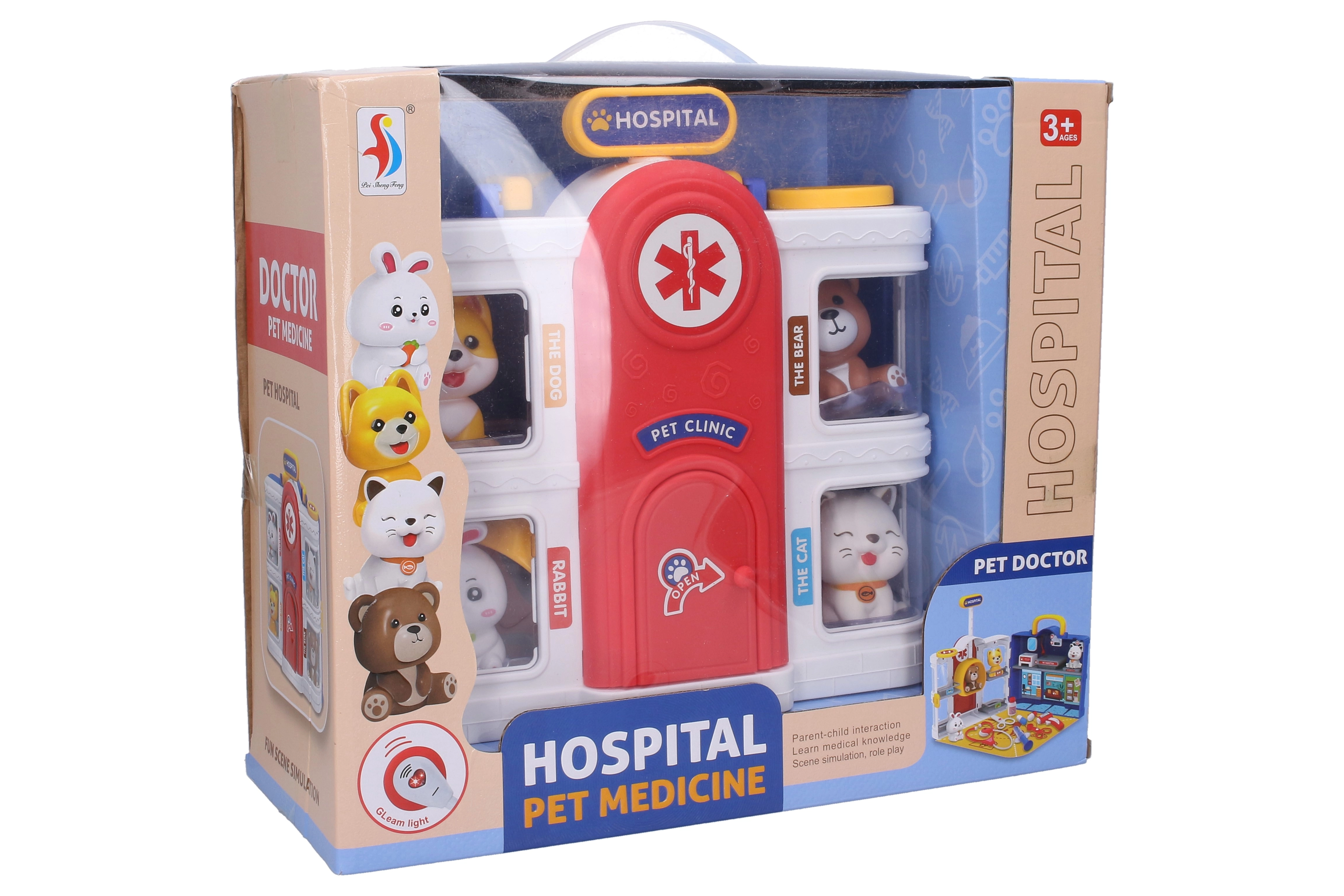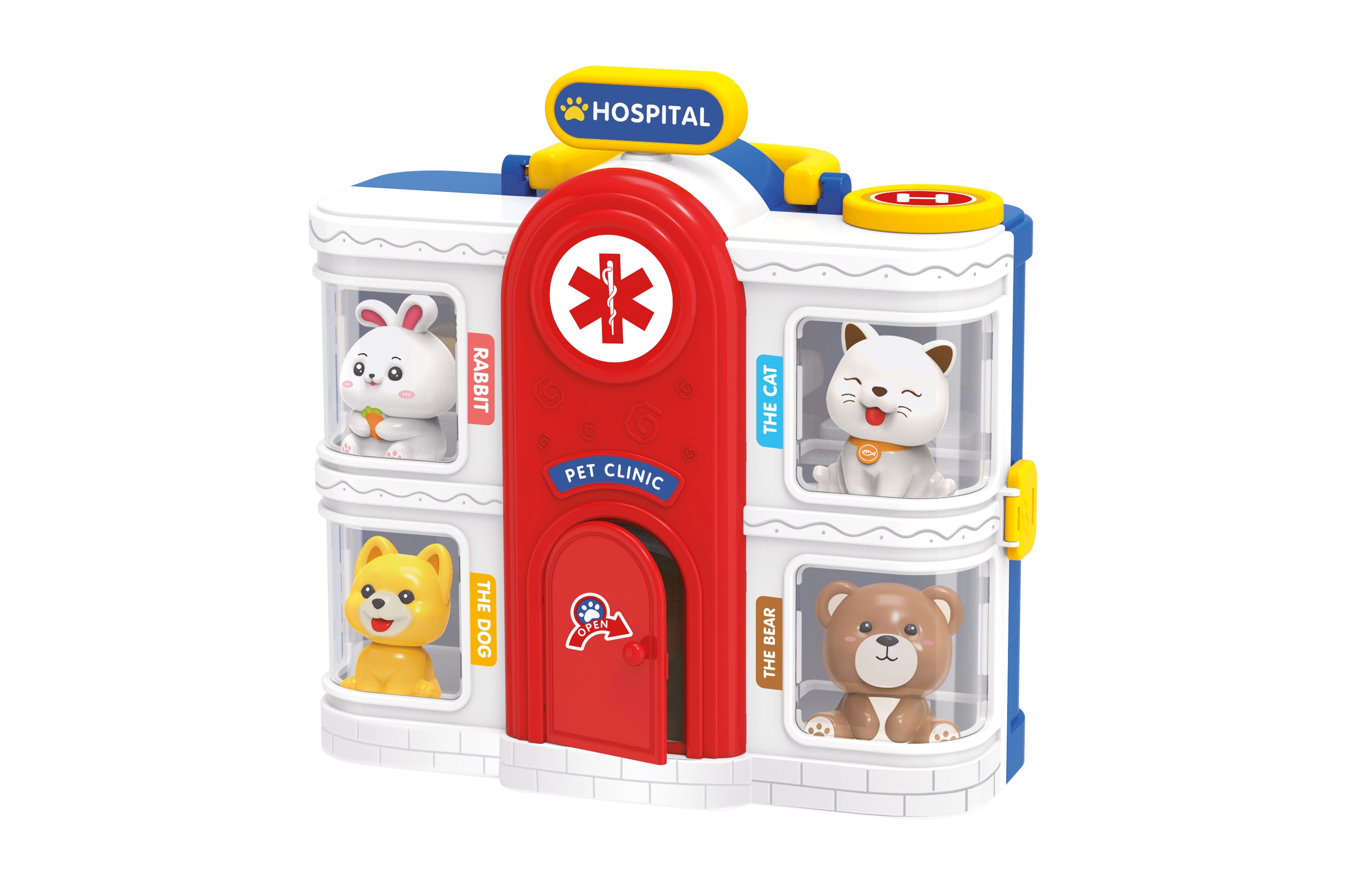 Nous vous présentons l'Hôpital portable pour animaux avec effets, un élément indispensable de chaque chambre d'enfant. Cet ensemble de jeu offre à la fois amusement et apprentissage.