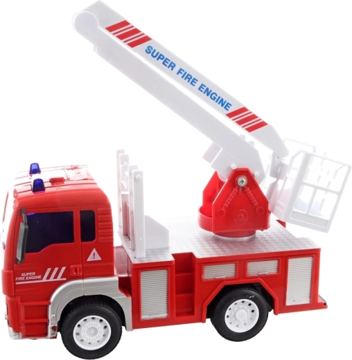 En appuyant sur le bouton de la cabine, la sirène et les gyrophares s’activent. Le camion roule par inertie et, grâce à sa réalisation détaillée, ressemble à un véritable véhicule d’intervention.