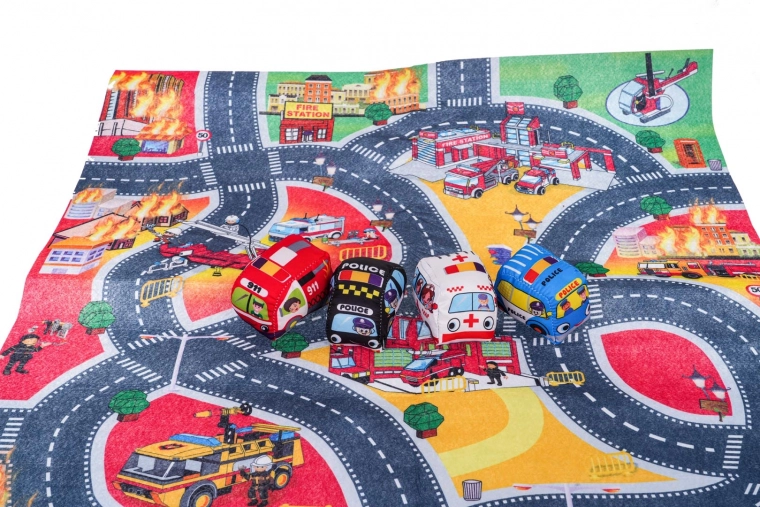 Tapis de jeu urbain de pompiers avec petites voitures souples