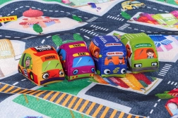 Découvrez un tapis en feutre à motif de ville et 4 petites voitures souples pour les tout-petits dès 6 mois. Le tapis propose un imprimé coloré de rues et de bâtiments, stimule l’imagination et le jeu en toute sécurité. Facile à entretenir, il présente des couleurs vives et est idéal pour les premières compétences motrices.