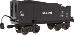 Après ajout d’eau, la locomotive produit une fumée sûre par la cheminée et les côtés, tout en éclairant avec son phare avant pour un effet saisissant en roulant.