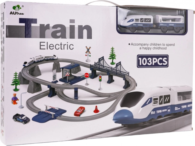 Découvrez un circuit de train ludique pour enfants dès 3 ans avec 103 pièces, une voie à deux niveaux, une gare avec lumière et son et un train moderne. Les attelages magnétiques puissants, le pont, les barrières, les petites voitures, les panneaux de signalisation et une figurine favorisent le jeu créatif et le développement de la motricité fine.