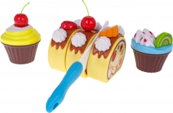 Les enfants peuvent décorer le gâteau et le roulé à leur guise avec des fruits, des glaçages et des bougies, servir sur des assiettes et organiser leur propre fête. Le riche assortiment encourage le jeu social, la communication et l’imagination.