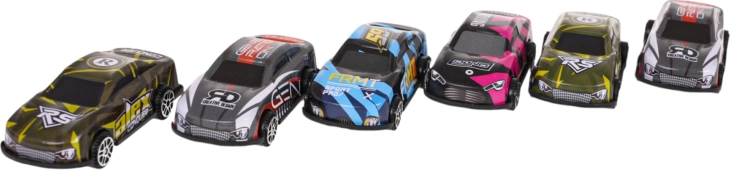 Le coffret comprend six véhicules détaillés avec carrosserie métallique et design aérodynamique, prêts pour la course.