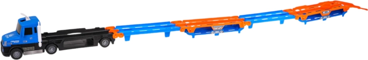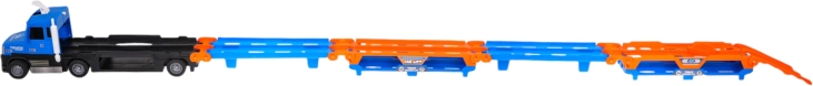 Une fois déplié, le camion crée une piste à deux niveaux de jusqu’à 140 cm, idéale pour des courses avec les voitures incluses.