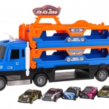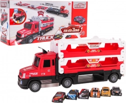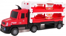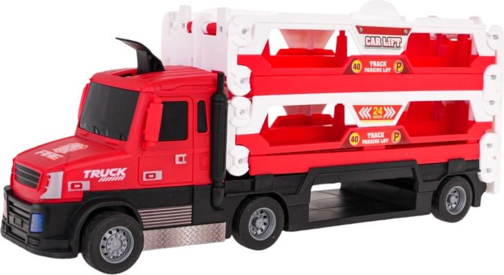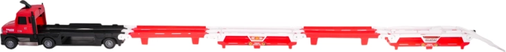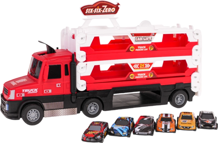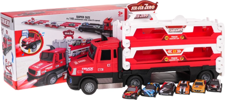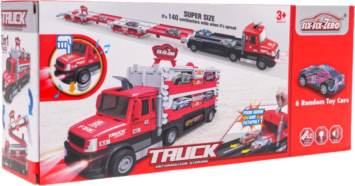 Camion à trois niveaux avec catapulte pour les enfants dès 3 ans, offrant des heures de jeu d’action. Il possède des pneus en caoutchouc pour une conduite stable, des effets lumineux et sonores, et une fois déployé se transforme en une longue piste de course de 140 cm. Inclus : 6 petites voitures métalliques à l’échelle 1:64 et un organiseur/séparateur pratique pour les ranger.