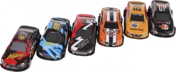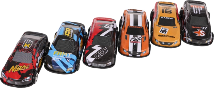 Le set comprend six voitures de course détaillées à l’échelle 1:64 avec une carrosserie métallique résistante, prêtes pour des courses immédiates.