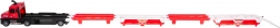 Placez la petite voiture au niveau inférieur et appuyez sur le levier sur le toit du camion. Le lanceur propulse la voiture vers l’avant sur la piste déployée.