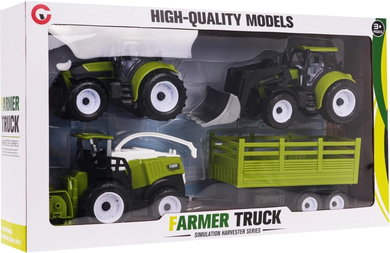 Contenu de l’ensemble : 2 tracteurs (propulsion arrière), une moissonneuse (propulsion avant) et une remorque pouvant être attelée aux deux types de machines. Grâce à une conception bien pensée, les enfants peuvent facilement charger, transporter et « récolter » tout en développant coordination et imagination.