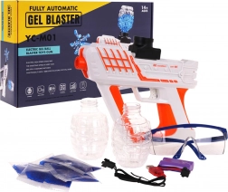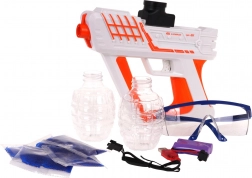 Le kit comprend un pistolet, des lunettes de protection, deux chargeurs pour billes de gel, quatre sachets de billes, une batterie rechargeable et un câble USB.