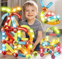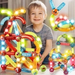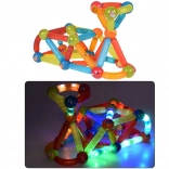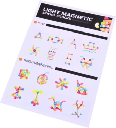 Le jeu de construction magnétique permet de créer diverses structures planes et tridimensionnelles, favorisant le jeu créatif et le développement des compétences motrices et logiques.