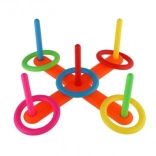 Profitez d’heures de divertissement avec ce formidable jeu de lancer. Assemblez la croix et essayez d’atteindre les piquets colorés à l’aide des anneaux en plastique. Ce jeu est non seulement amusant, mais il soutient aussi le développement de la motricité fine et la coordination main-œil. L’emballage contient tout le nécessaire pour commencer à jouer immédiatement.