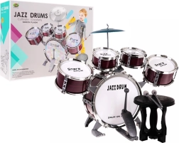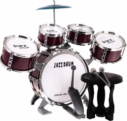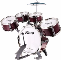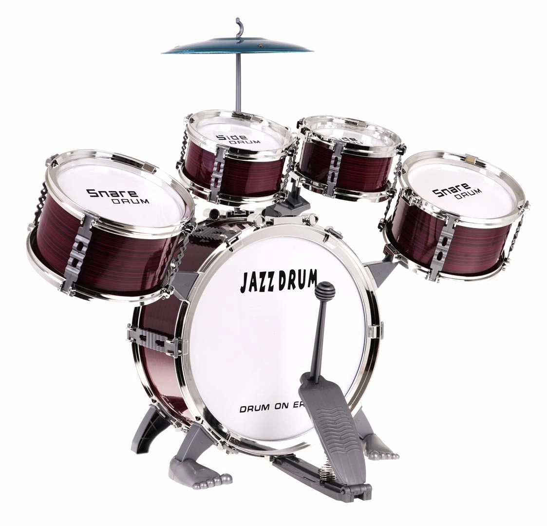 Comprend toutes les pièces nécessaires : cinq tambours, une cymbale, des baguettes et un tabouret.