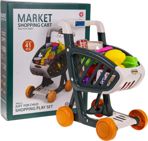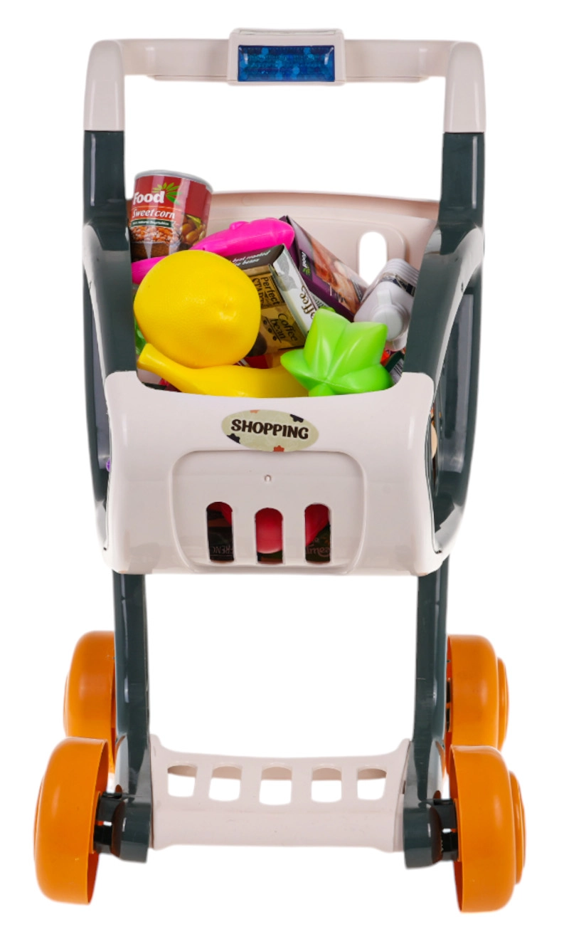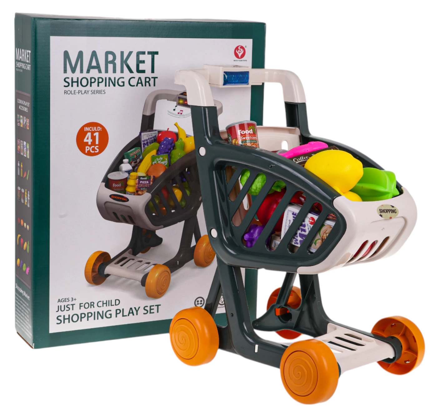 L’ensemble comprend un large choix de « courses » – fruits, légumes, boissons et boîtes d’aliments – qui aide à développer la motricité fine, la reconnaissance des couleurs et des formes ainsi que la communication. Le panneau de commande avec bouton déclenche des lumières clignotantes et des mélodies joyeuses qui motivent les enfants à continuer de jouer.