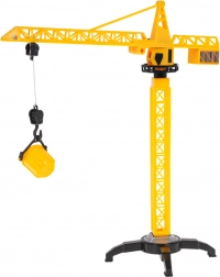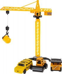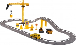 La grue se distingue par une flèche rotative à 360° et un crochet commandé manuellement pour le chargement. Parmi les accessoires, on trouve divers véhicules de chantier mobiles, comme une benne à caisse réglable et des compacteurs avec tambours rotatifs. La voiture électrique est alimentée par 1 pile AA 1,5 V (piles non incluses).