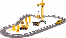 Le set comprend des voitures réalistes avec des parties mobiles, comme une benne basculante et un rouleau compresseur, stimulant l’imagination des enfants.