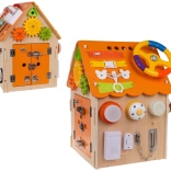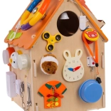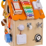 La maison est équipée d’un éclairage LED dissimulé sous le toit. Des éléments individuels, tels que les sonnettes, la boîte à musique et le téléphone, disposent de fonctions sonores. Les fonctions interactives sont alimentées par 7 piles AAA 1,5 V (incluses). Jouer avec la maison développe globalement les compétences des enfants et leur apprend à utiliser les objets du quotidien.
