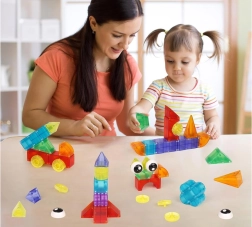 Ce set coloré de blocs magnétiques permet aux enfants de construire des voitures, des tours, des animaux et des créations imaginaires. Les pièces en plastique robuste et sûr tiennent fermement grâce aux aimants intégrés, et les modules lumineux apportent un effet spectaculaire à chaque création. Des guides avec différents niveaux de difficulté sont inclus pour permettre une progression étape par étape.