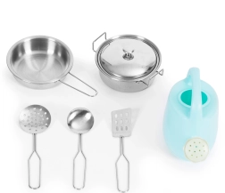 - 7 pcs (casserole, couvercle, poêle, 2× spatule, louche, petite bouilloire)