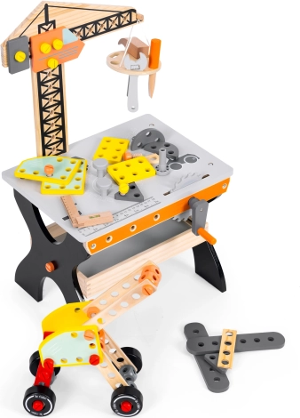 Découvrez un atelier créatif pour petits bricoleurs : un établi en bois robuste avec grue, outils et éléments de fixation de la marque ECOTOYS. Il favorise la motricité fine, la coordination œil-main et la créativité, présente une conception sûre sans arêtes vives et permet, à partir des pièces fournies, de construire jusqu’à 9 jouets différents.