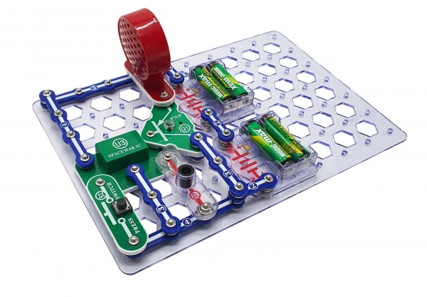 Les composants se clipsent simplement sur une plaque transparente. Le codage couleur et les schémas clairs garantissent un montage rapide et correct.