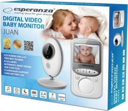 Le babyphone électronique Esperanza JUAN avec écran LCD 2,4″ vous permet de garder votre bébé sous surveillance en permanence tout en vous déplaçant librement dans la maison. Il offre une vision nocturne, un interphone bidirectionnel, le mode VOX pour économiser l’énergie, la mesure de la température ambiante et une portée jusqu’à 260 m. Il ajoute également 8 berceuses et une longue autonomie de batterie jusqu’à 20 heures.