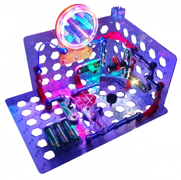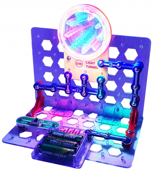 Expérimentez avec des illusions d’optique et des modules lumineux rotatifs. Les enfants comprennent, de façon ludique et sûre, le fonctionnement de la lumière, des couleurs et de la rotation.