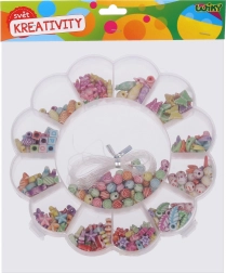 Ce kit créatif est idéal pour les enfants comme pour les adultes qui aiment le bricolage. Grâce à une palette variée de formes et de couleurs, vous réaliserez facilement des bracelets, des colliers ou de petites décorations. L’emballage en forme de fleur est pratique pour un rangement clair et organisé.