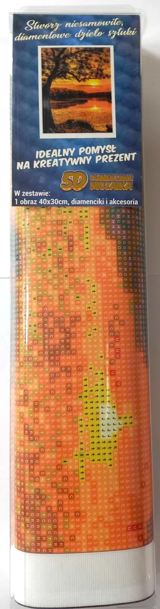 Contenu de l’emballage : toile avec motif préimprimé, stylet pour l’application des strass, coupelle pour verser les strass, cire adhésive, assortiment de strass colorés.