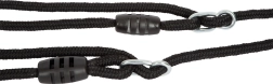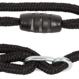 Bois massif de haute qualité et cordes en plastique noir résistantes aux intempéries.