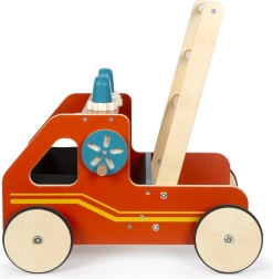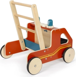 Le chariot de marche en bois Pompiers de la marque SMALL FOOT accompagne les premiers pas grâce à une construction robuste, un système de freinage et des roues silencieuses revêtues de caoutchouc. Des éléments interactifs comme des engrenages, une roue tournante avec manivelle et des feux mobiles développent la motricité et la coordination, tandis que le panier amovible en feutrine offre un rangement pratique pour les trésors.