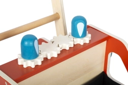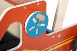 Le divertissement et le développement de la motricité fine sont assurés par des détails fonctionnels: engrenages, roue tournante avec manivelle et feux bleus mobiles. Le panier amovible en feutrine sert d'espace de rangement pour les jouets et les petits objets, afin que chaque intervention soit rapide et bien organisée.