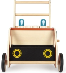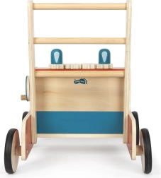 La structure en bois solide et le système de freinage intégré apportent aux enfants de l'assurance lors de la marche comme lors des déplacements plus rapides. Quatre larges roues assurent la stabilité sur différents types de sol.