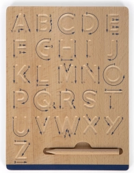 Les rainures fraisées avec flèches guident l’enfant lors de l’écriture et fixent les bonnes directions de traits pour les lettres A–Z et les chiffres 0–9.