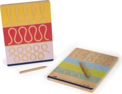 Le kit small foot Educate est l’outil idéal pour les enfants d’âge préscolaire et les jeunes écoliers qui apprennent leurs premiers tracés. Deux planches en bois double face offrent quatre exercices différents : lettres, chiffres et motifs pré-graphiques. Suivre les rainures fraisées avec flèches enseigne naturellement l’ordre correct des traits et favorise la mémoire de la main.