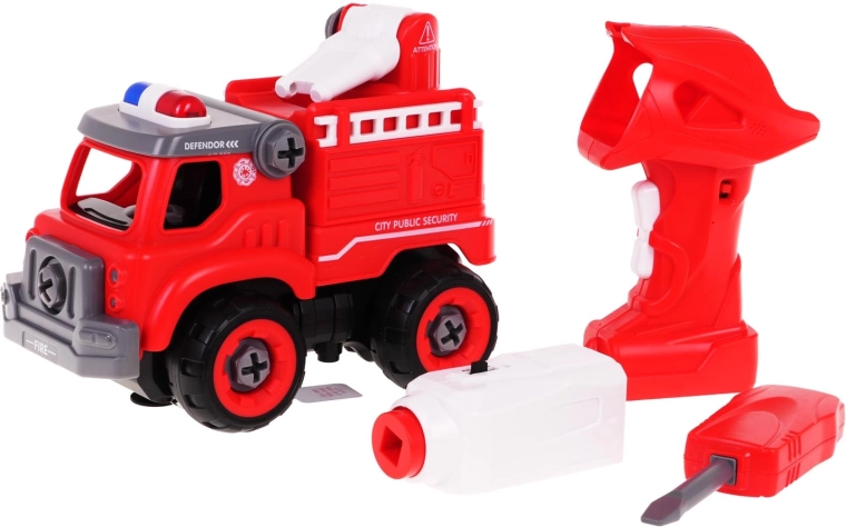 Ce camion de pompiers démontable offre aux enfants à la fois une construction ludique et des scènes d’action captivantes. Grâce au tournevis manuel et à la perceuse électrique inclus, les petits techniciens s’exercent à l’assemblage des pièces et développent leur motricité fine et leur imagination. En insérant le panneau de commande, le camion peut avancer ou reculer tout seul, ou être piloté comme un véhicule RC.