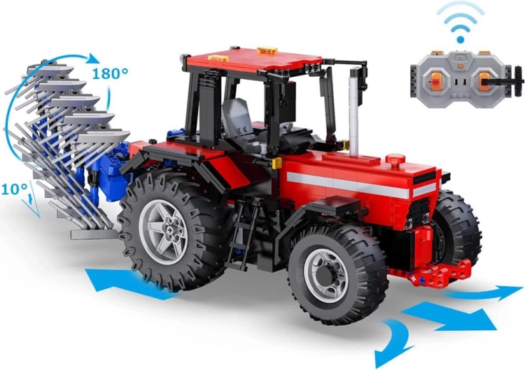 Assemblez un tracteur réaliste à l’échelle 1:17 à partir de 1675 pièces, puis profitez de la conduite grâce au télécommande. Le modèle de couleur rouge classique offre un capot ouvrant, des rétroviseurs réglables, un intérieur détaillé et un attelage arrière fonctionnel. Inclus: batterie 7,4 V, moteurs pour une marche avant/arrière fluide et rotation de l’accessoire arrière à 180° pour une simulation authentique des travaux aux champs.